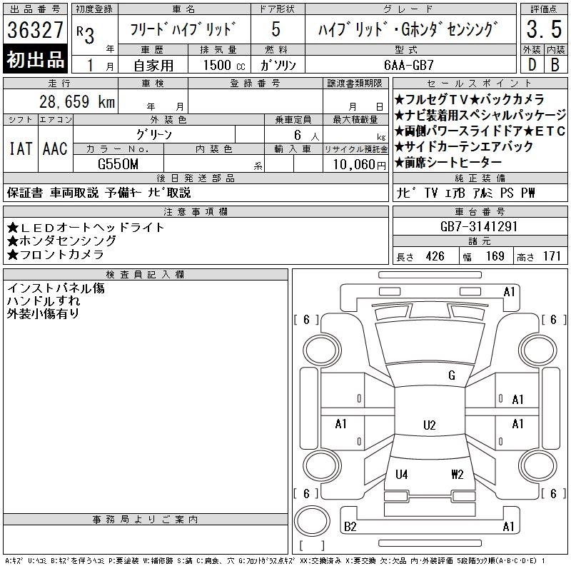HONDA FREED HYBRID 2021 г., лот № 36327