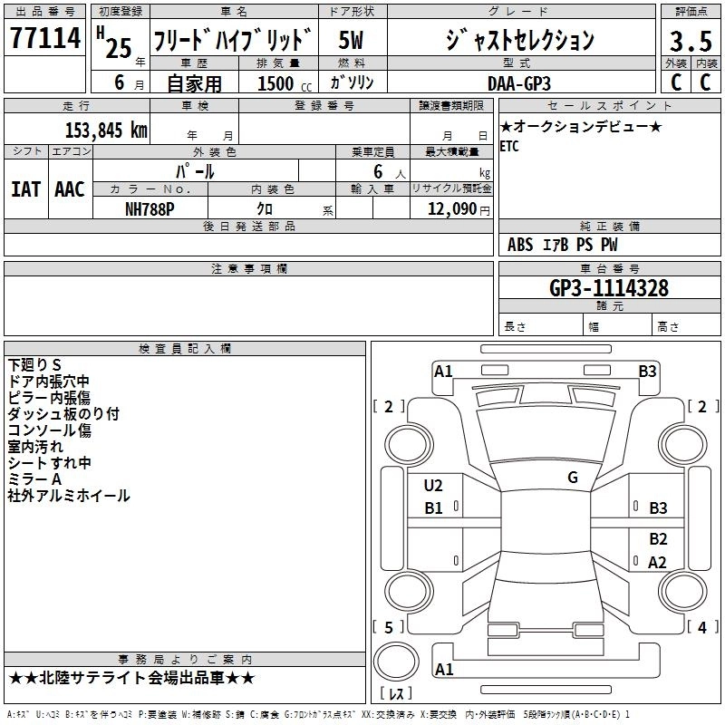 HONDA FREED HYBRID 2013 г., лот № 77114