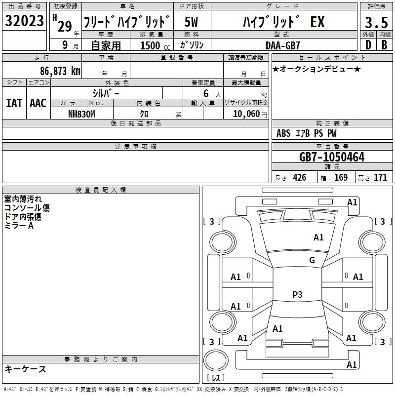 HONDA FREED HYBRID 2017 г., лот № 32023