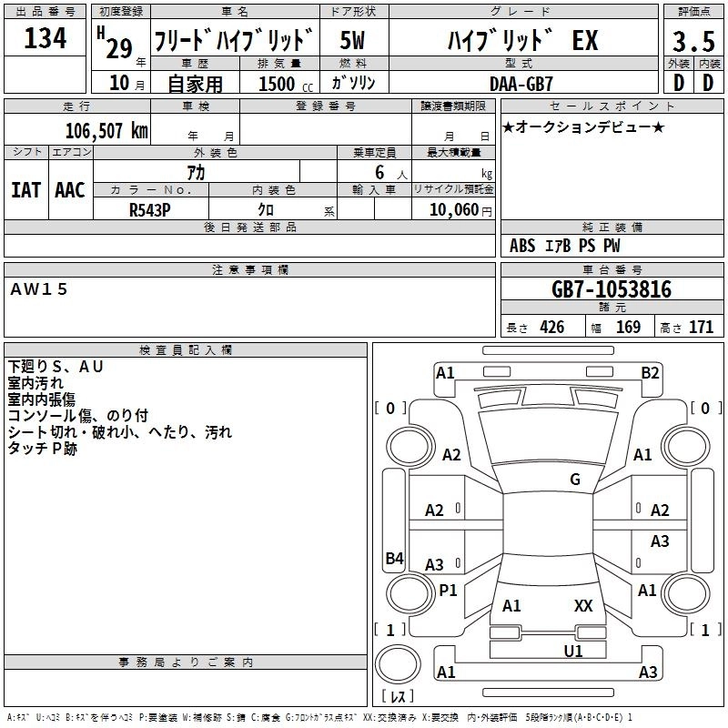 HONDA FREED HYBRID 2017 г., лот № 134