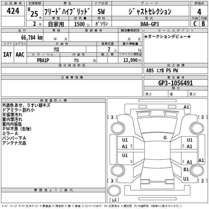 HONDA FREED HYBRID 2013 г., лот № 424