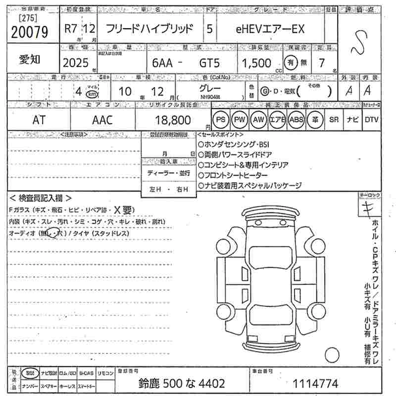 Статус не продан Лот 20079 Аукцион MIRIVE Aichi Дата аукциона 23.01.2026