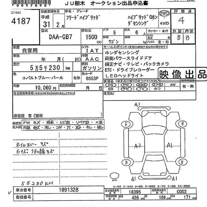 HONDA FREED HYBRID 2019 г., лот № 4187