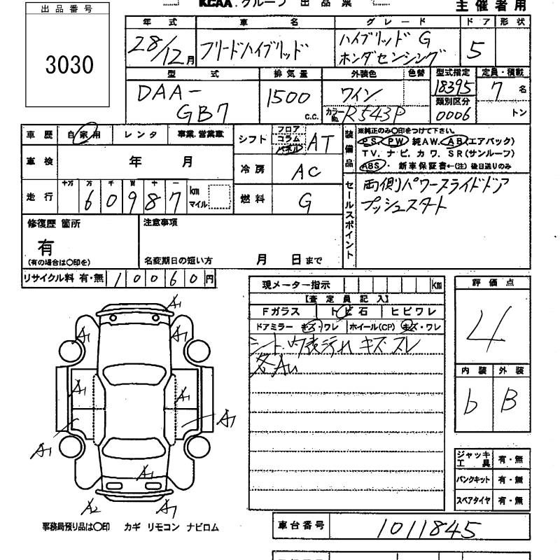 HONDA FREED HYBRID 2016 г., лот № 3030