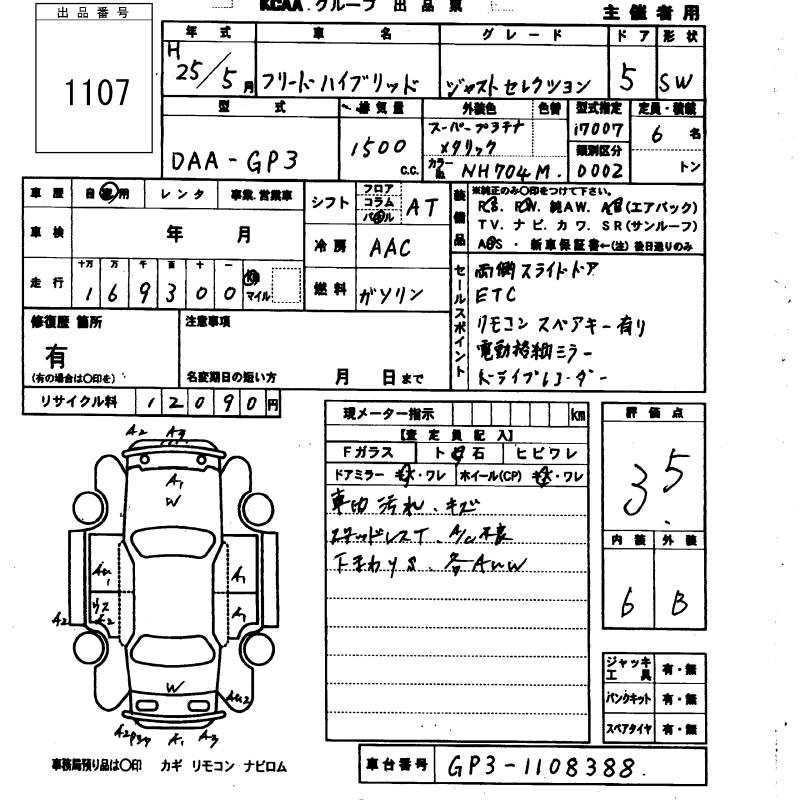HONDA FREED HYBRID 2013 г., лот № 1107