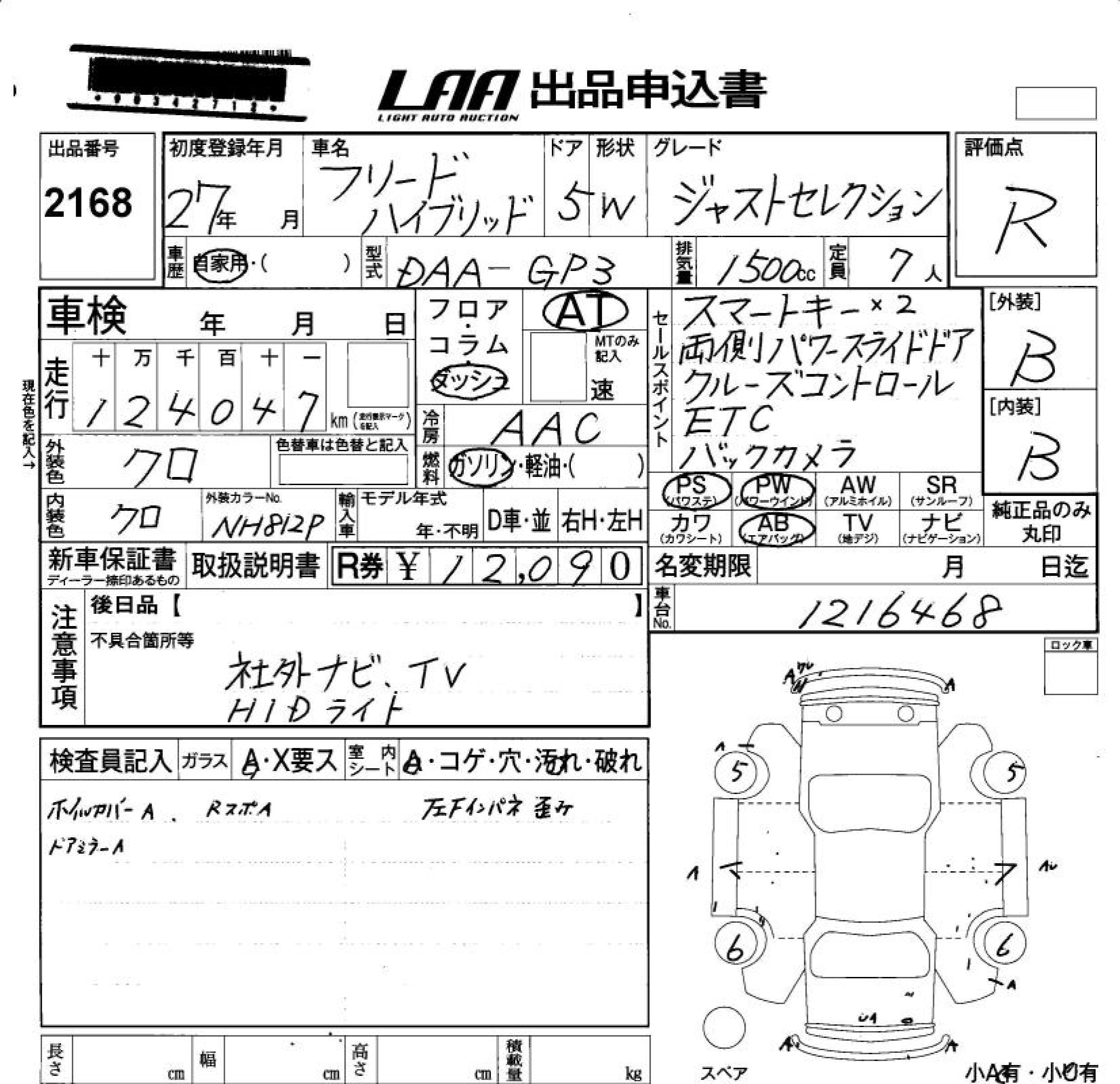 HONDA FREED HYBRID 2015 г., лот № 2168