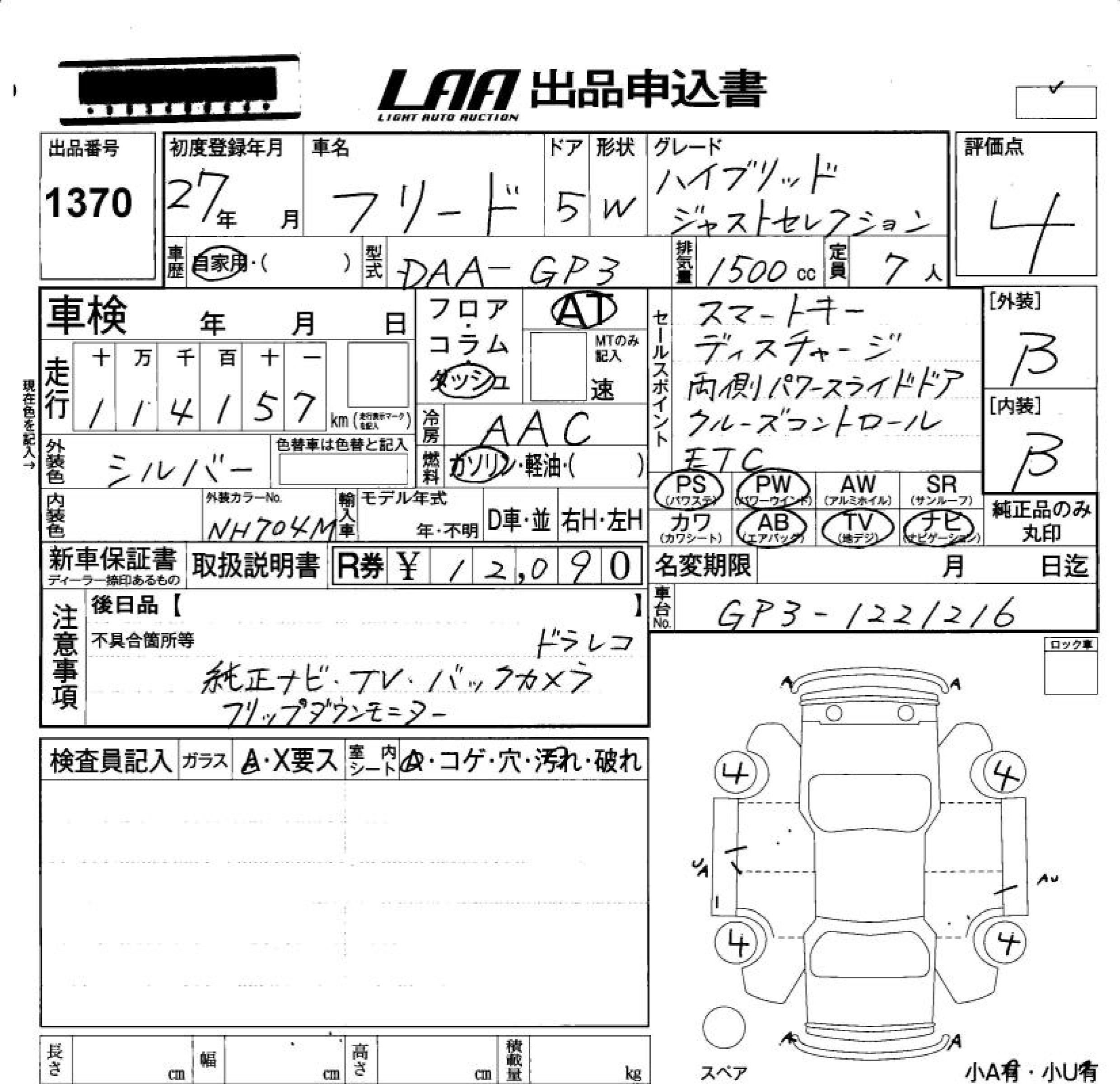 HONDA FREED HYBRID 2015 г., лот № 1370