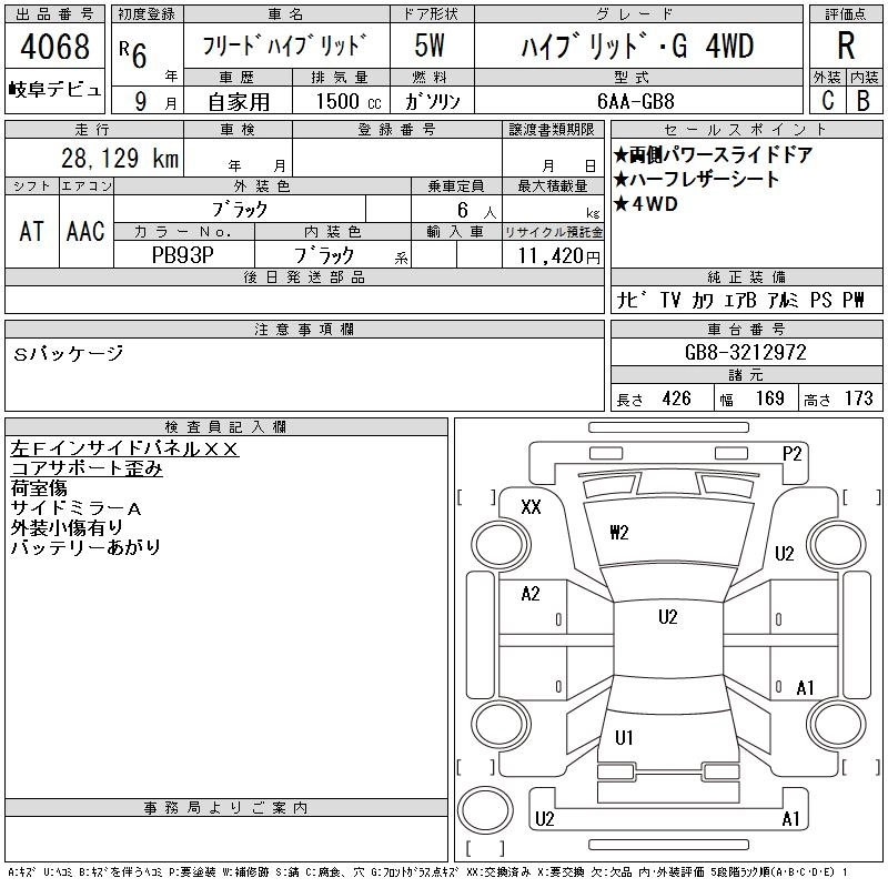 HONDA FREED HYBRID 2024 г., лот № 4068