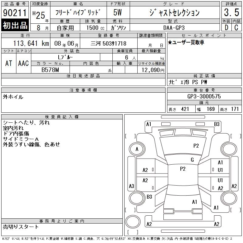 HONDA FREED HYBRID 2013 г., лот № 90211