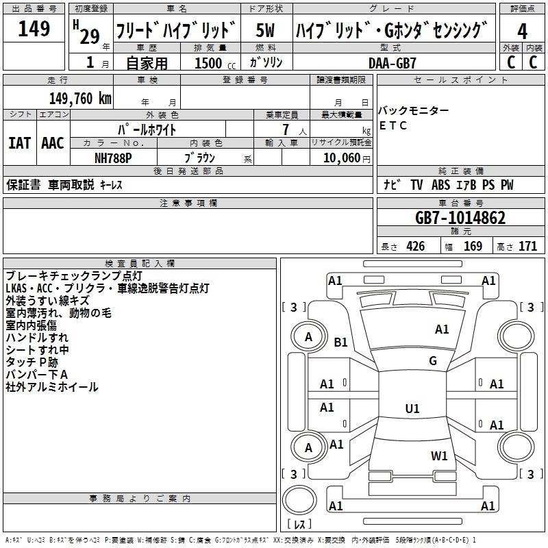HONDA FREED HYBRID 2017 г., лот № 149