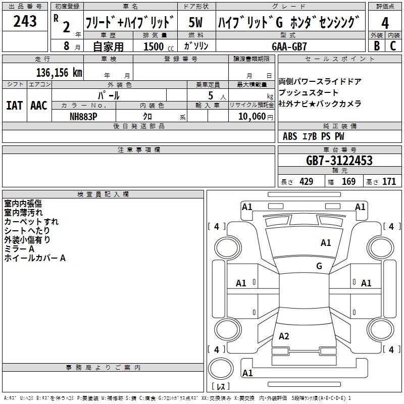 HONDA FREED + HYBRID 2020 г., лот № 243