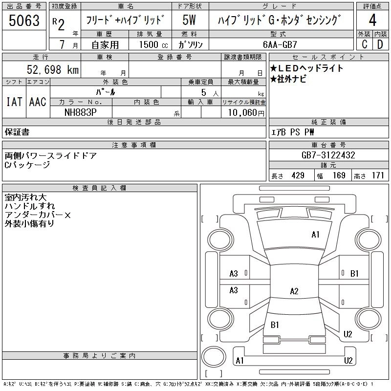 HONDA FREED + HYBRID 2020 г., лот № 5063