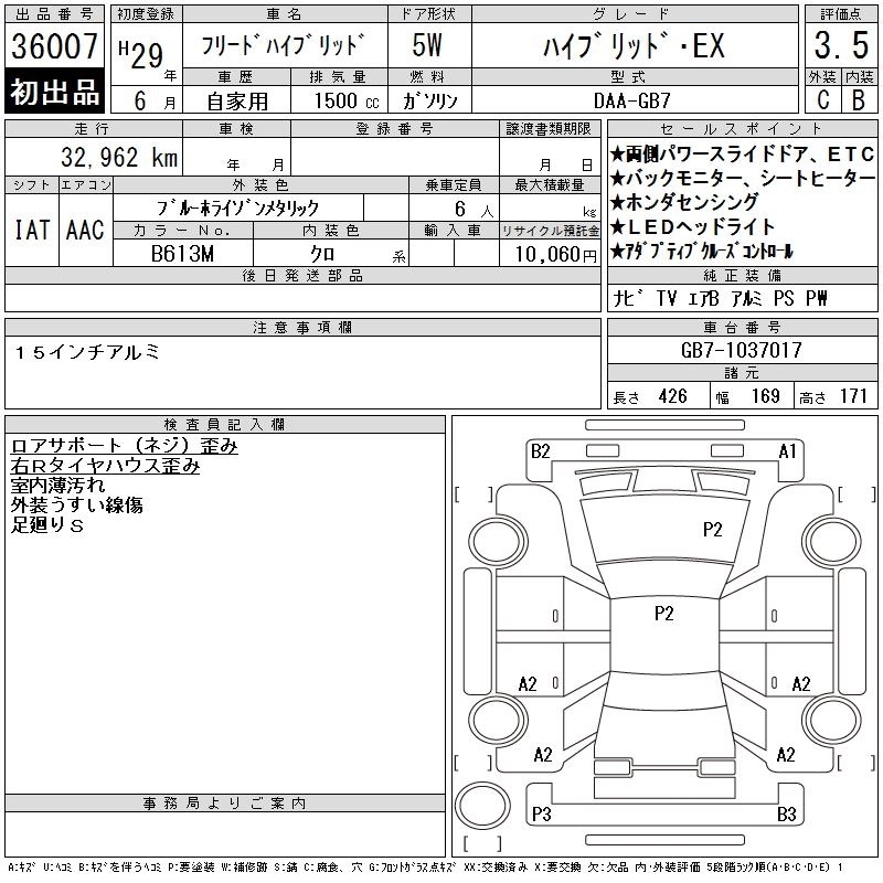 HONDA FREED HYBRID 2017 г., лот № 36007