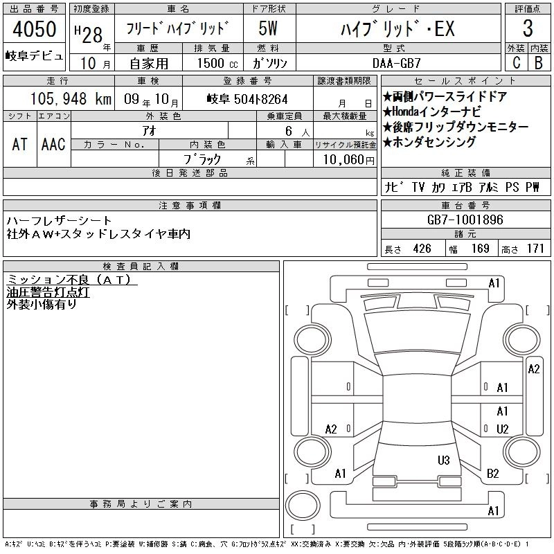 HONDA FREED HYBRID 2016 г., лот № 4050