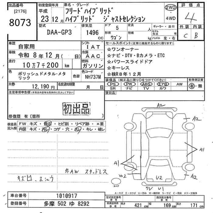 HONDA FREED HYBRID 2011 г., лот № 8073