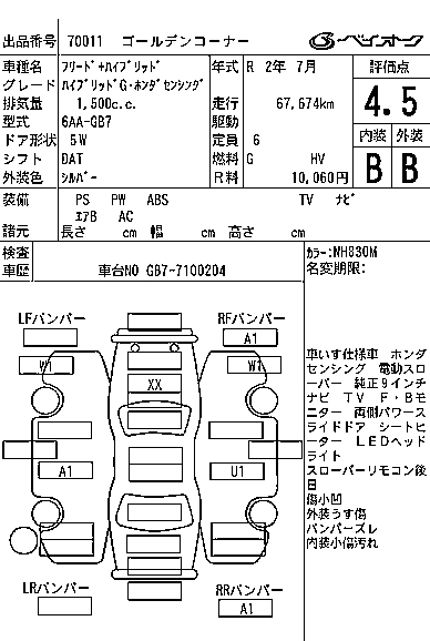 HONDA FREED + HYBRID 2020 г., лот № 70011