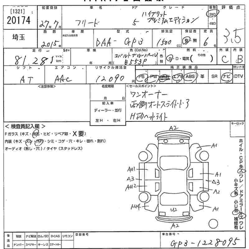 HONDA FREED HYBRID 2015 г., лот № 20174