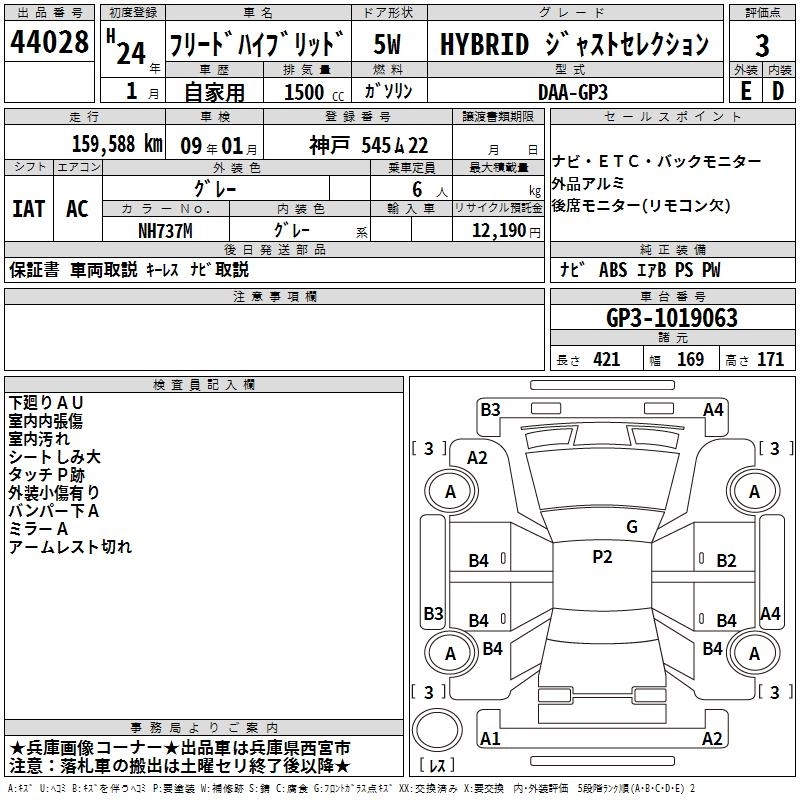 HONDA FREED HYBRID 2012 г., лот № 44028