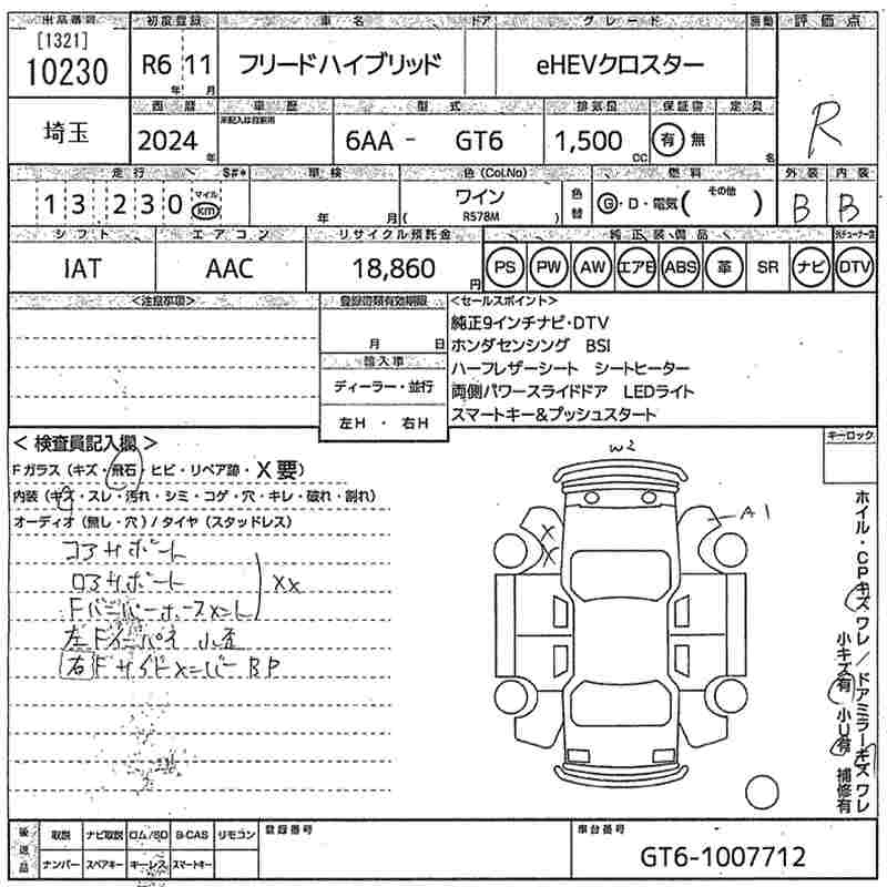 HONDA FREED HYBRID 2024 г., лот № 10230