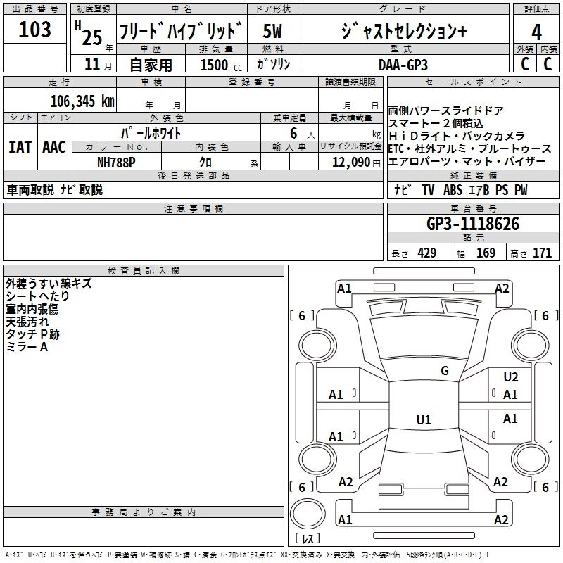 HONDA FREED HYBRID 2013 г., лот № 103