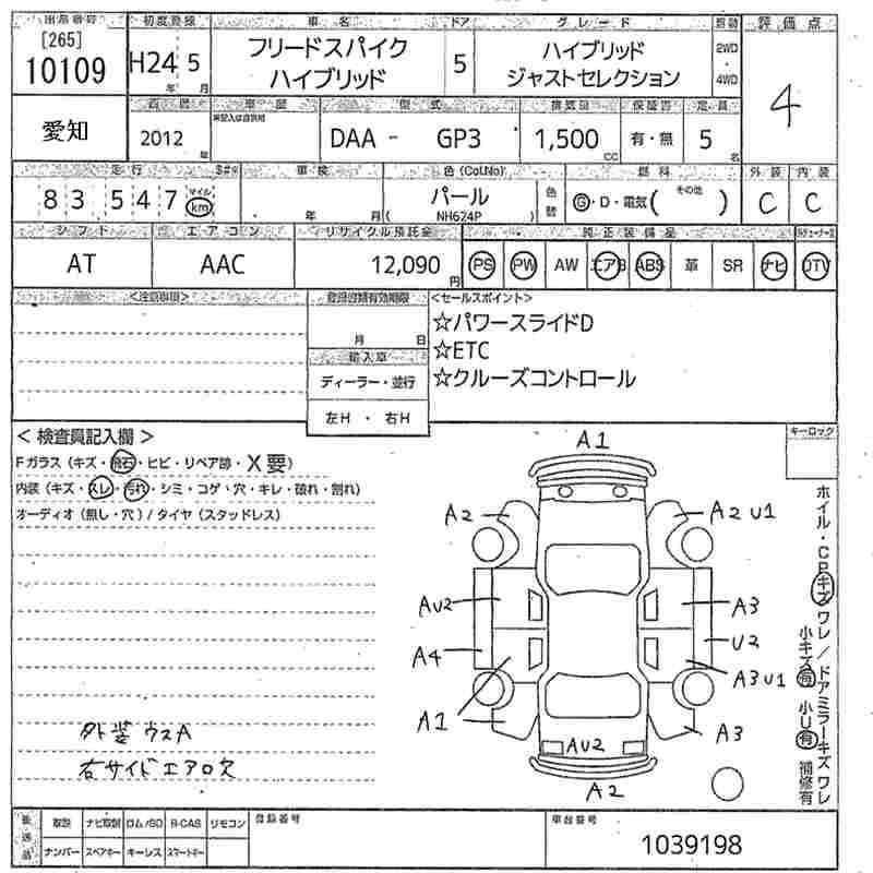 HONDA FREED SPIKE HYBRID 2012 г., лот № 10109
