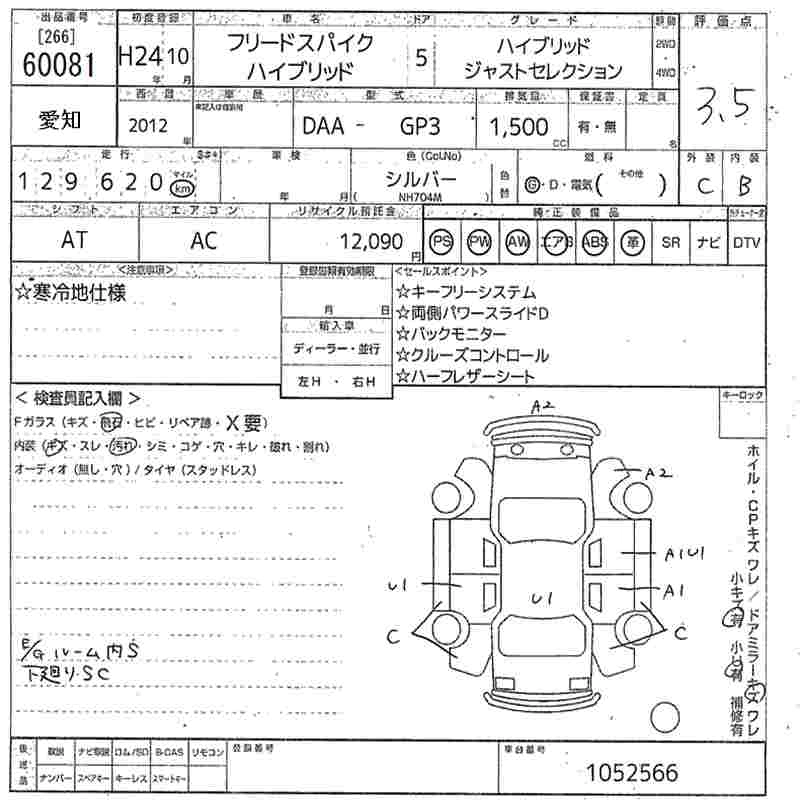 HONDA FREED SPIKE HYBRID 2012 г., лот № 60081