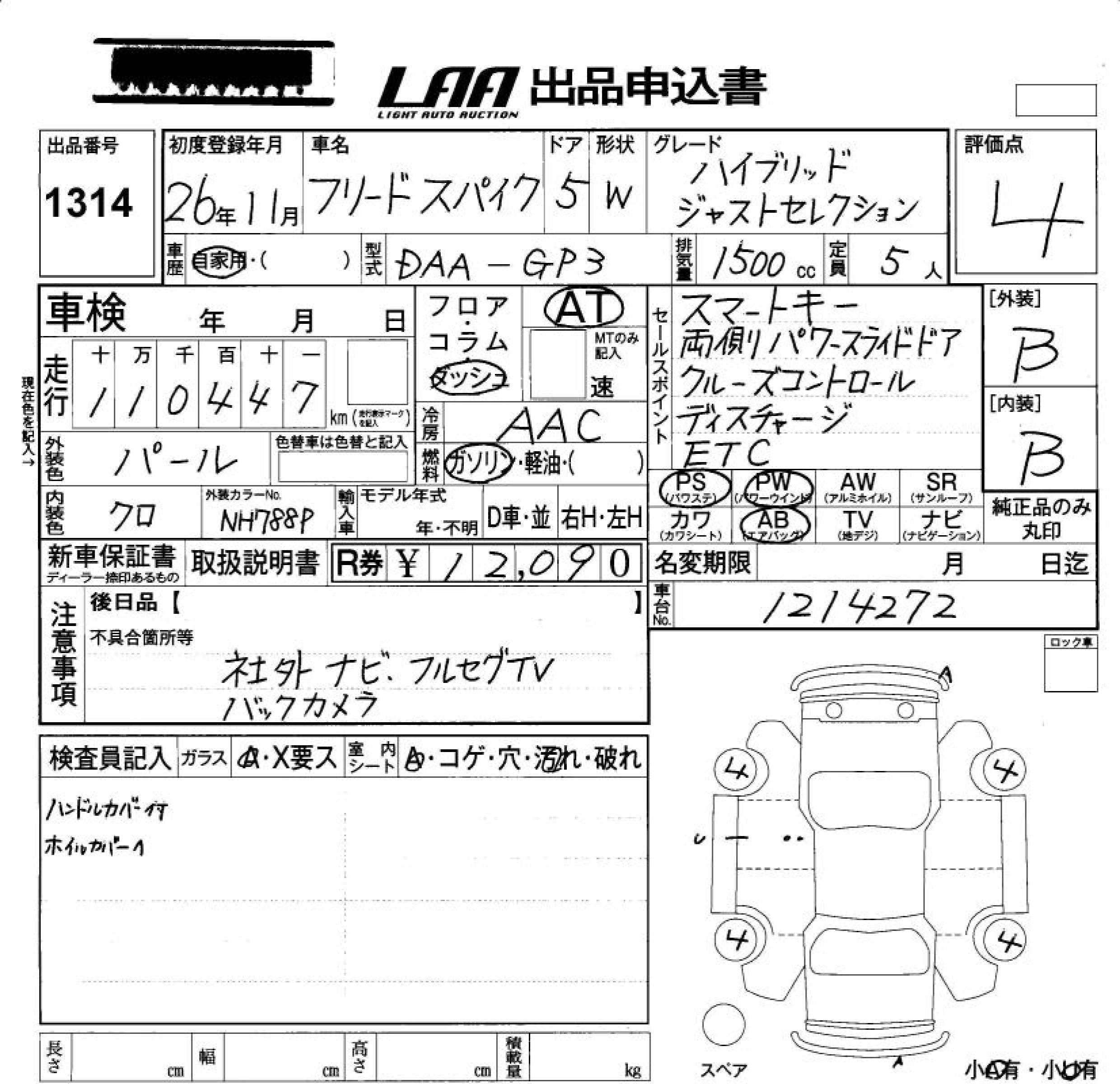 HONDA FREED SPIKE HYBRID 2014 г., лот № 1314