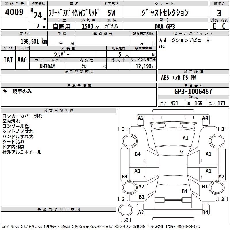 HONDA FREED SPIKE HYBRID 2012 г., лот № 4009