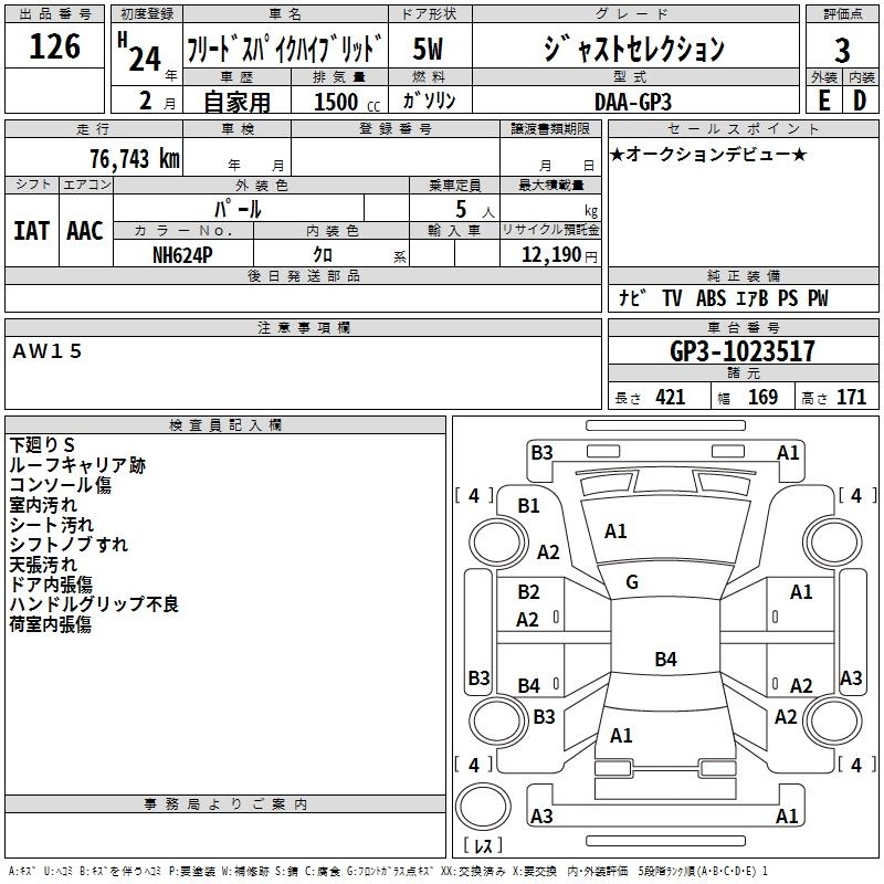 HONDA FREED SPIKE HYBRID 2012 г., лот № 126