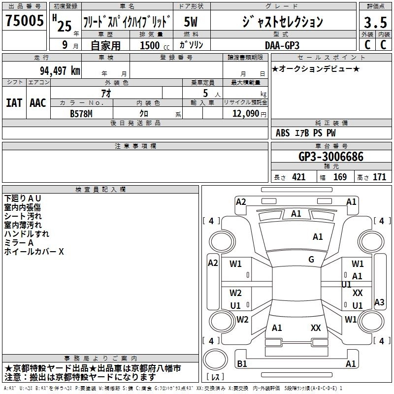 HONDA FREED SPIKE HYBRID 2013 г., лот № 75005