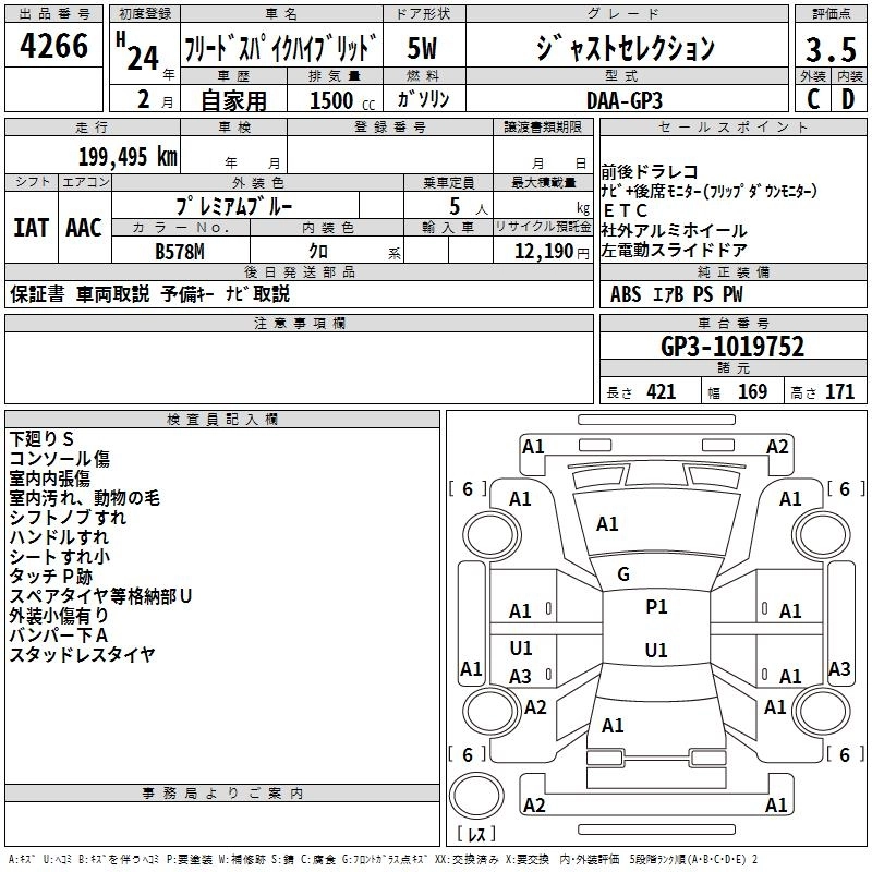 HONDA FREED SPIKE HYBRID 2012 г., лот № 4266