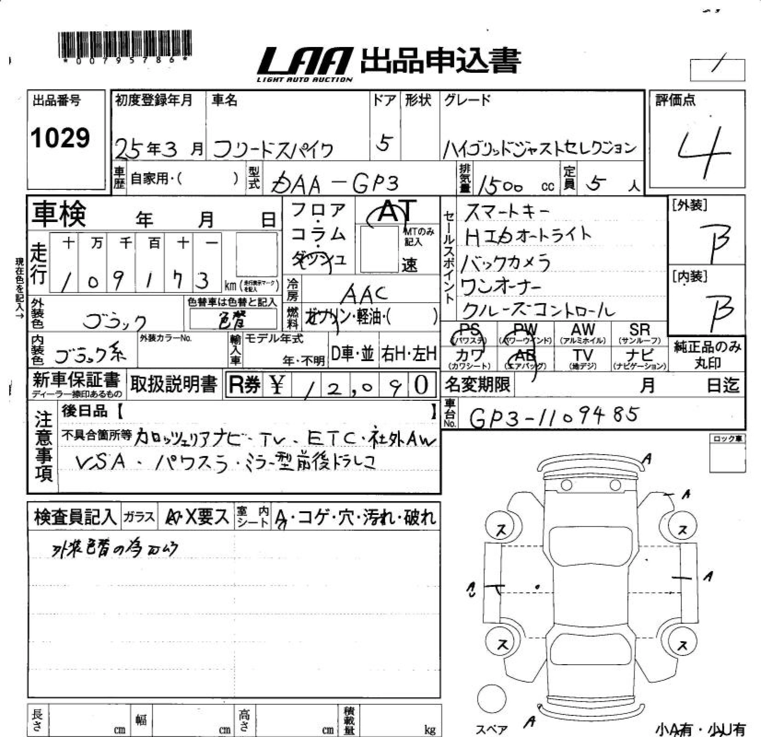 HONDA FREED SPIKE HYBRID 2013 г., лот № 1029