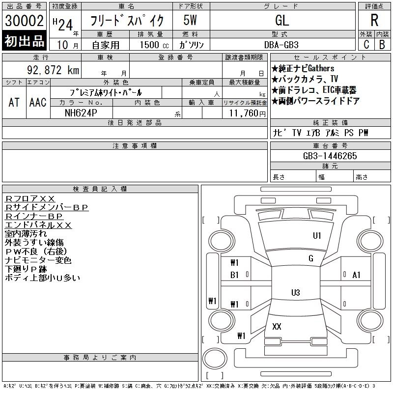 HONDA FREED SPIKE 2012 г., лот № 30002