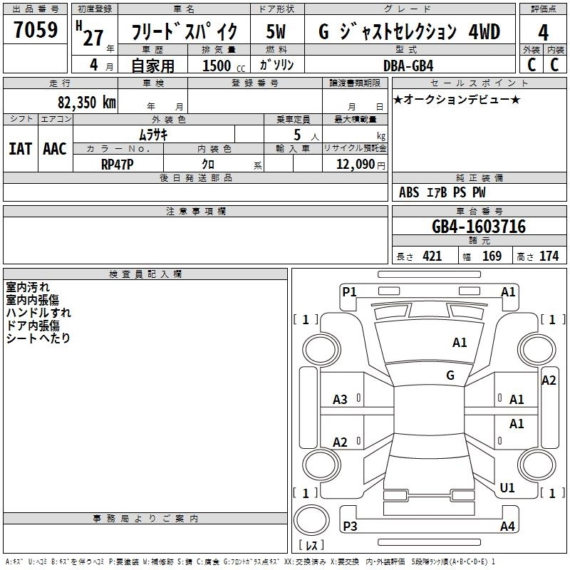 HONDA FREED SPIKE 2015 г., лот № 7059