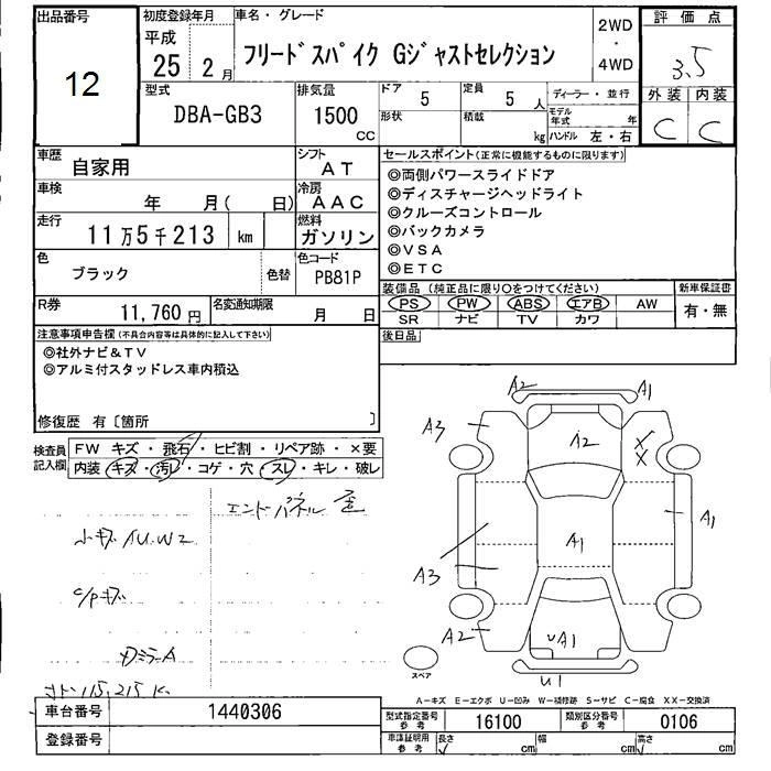 HONDA FREED SPIKE 2013 г., лот № 12