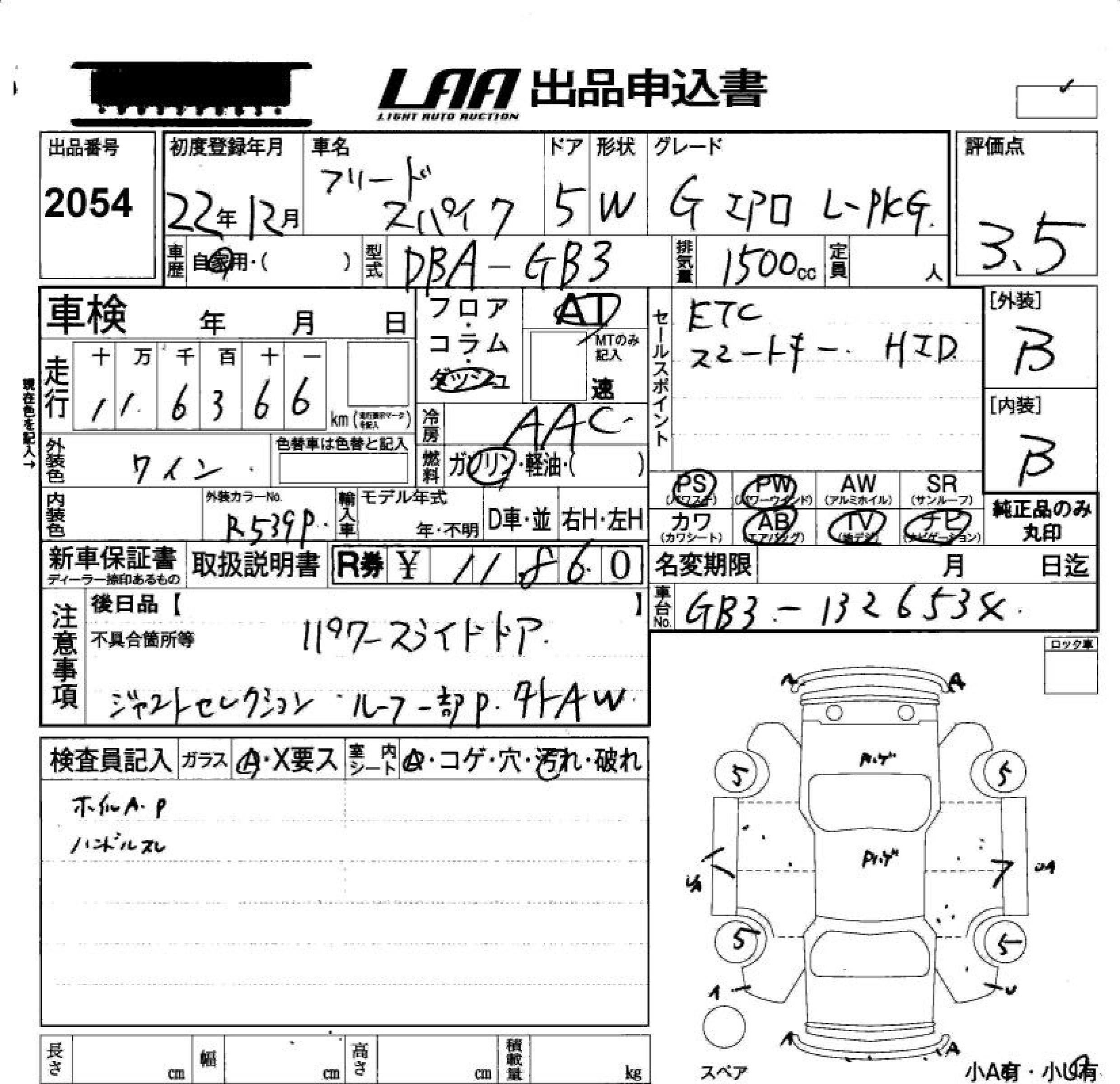 Статус не продан Лот 2054 Аукцион LAA Okayama Дата аукциона 23.01.2026