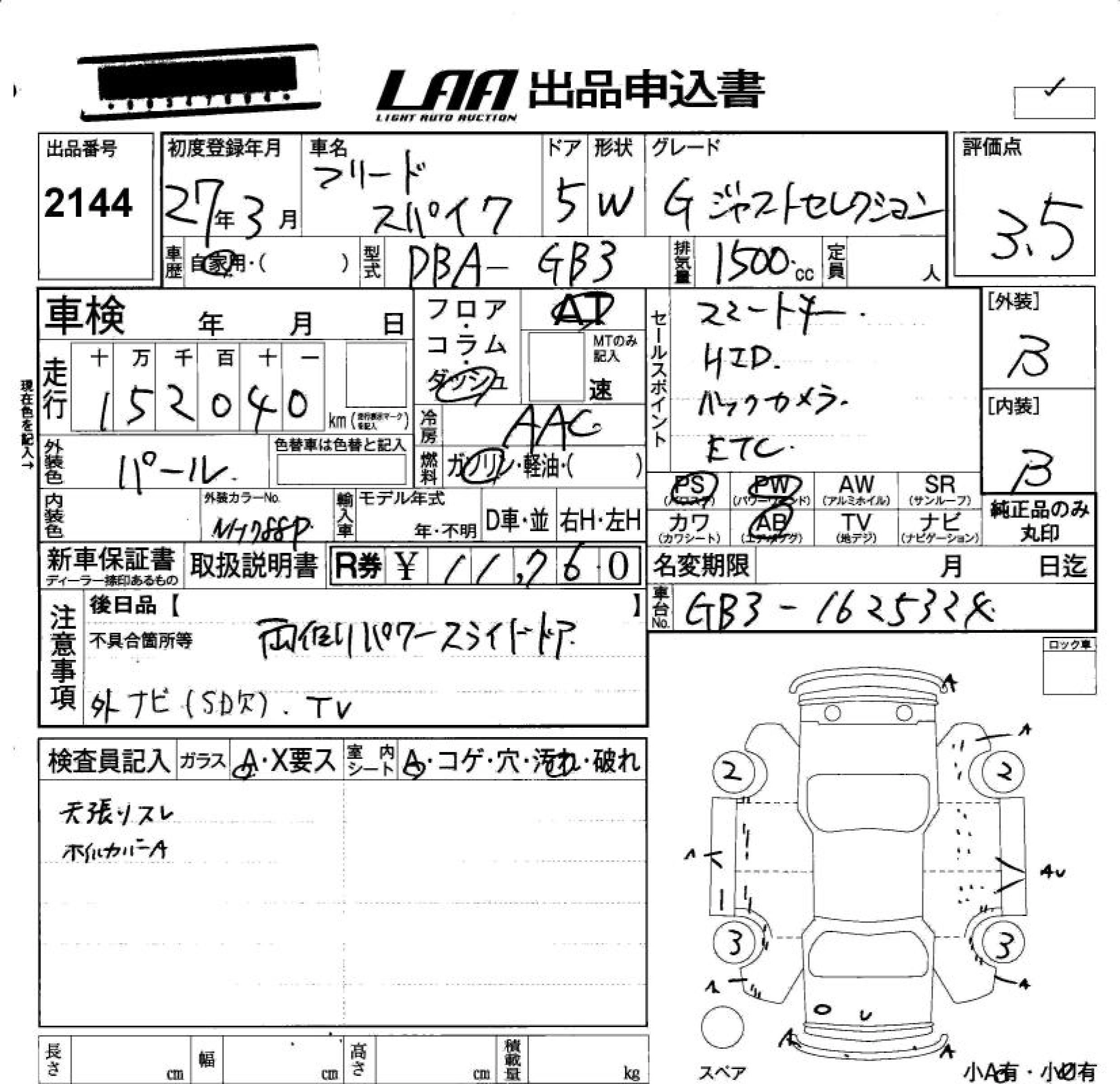 Статус не продан Лот 2144 Аукцион LAA Okayama Дата аукциона 23.01.2026
