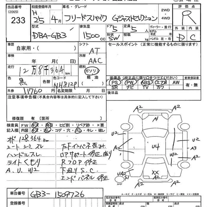 HONDA FREED SPIKE 2013 г., лот № 233
