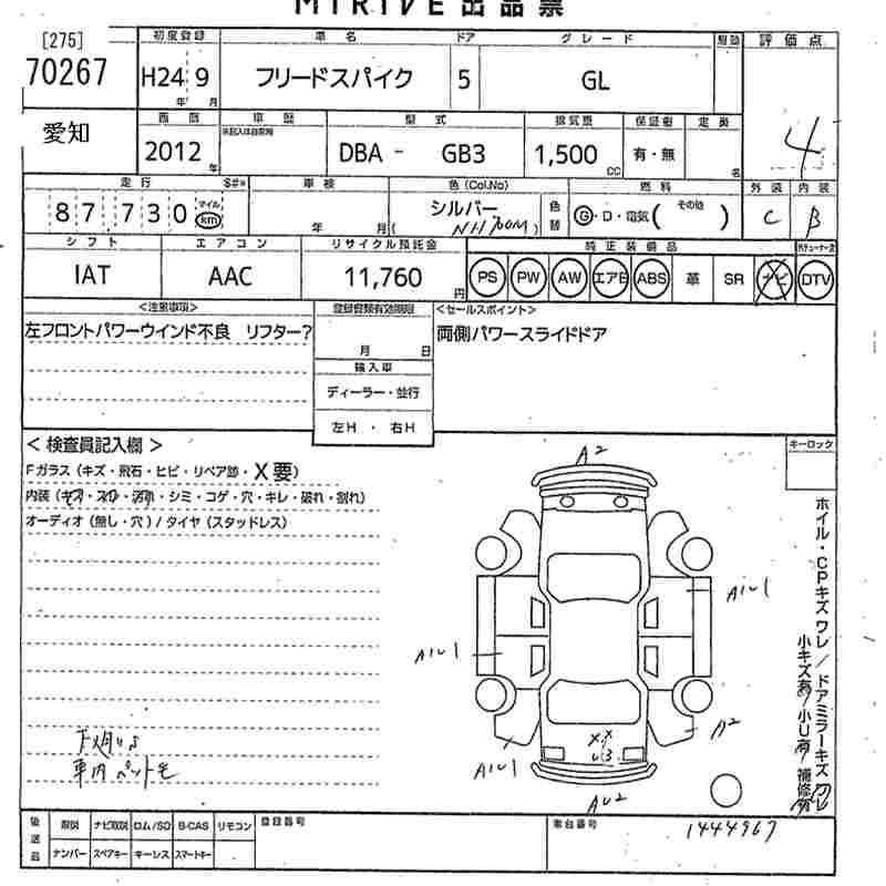 HONDA FREED SPIKE 2012 г., лот № 70267