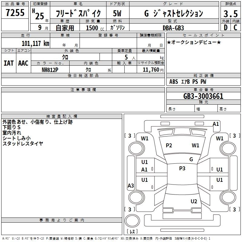 HONDA FREED SPIKE 2013 г., лот № 7255