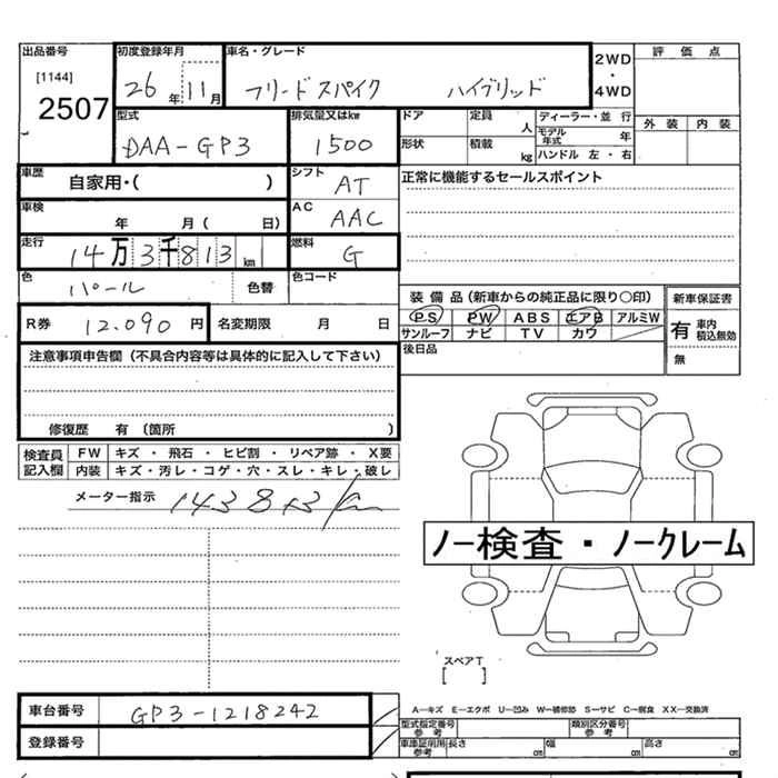 HONDA FREED SPIKE 2014 г., лот № 2507