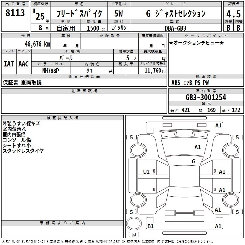 HONDA FREED SPIKE 2013 г., лот № 8113