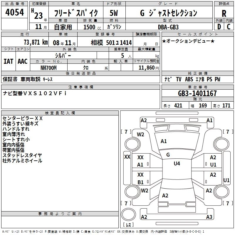 HONDA FREED SPIKE 2011 г., лот № 4054