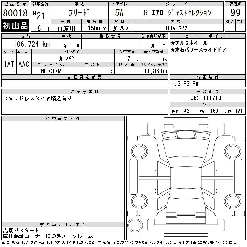 Год выпуска2009 Пробег 107 000 км КузовGB3 КомплектацияG AERO JUST SELECTION