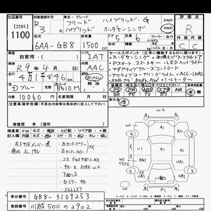 HONDA FREED 2021 г., лот № 1100