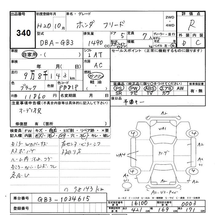 HONDA FREED 2008 г., лот № 340