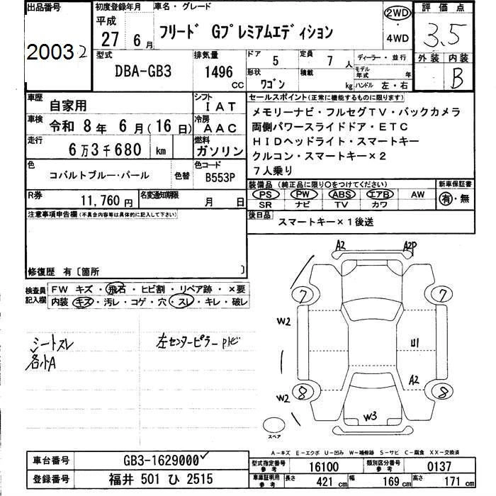 HONDA FREED 2015 г., лот № 2003