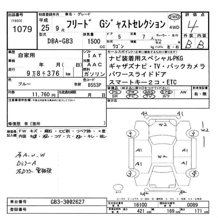 HONDA FREED 2013 г., лот № 1079