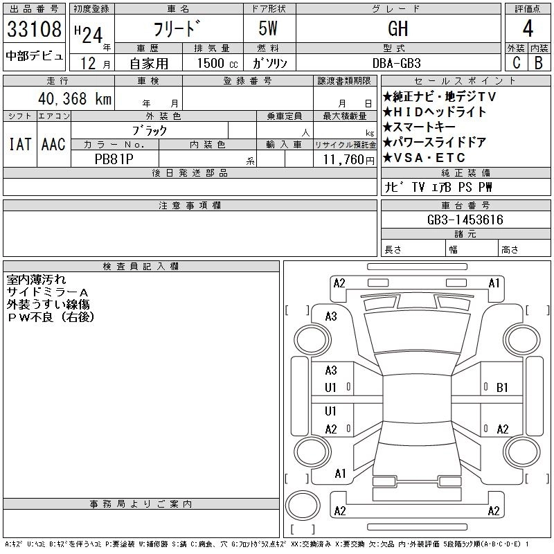 HONDA FREED 2012 г., лот № 33108