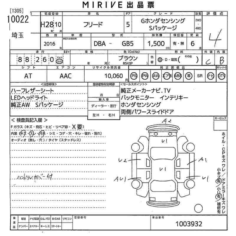HONDA FREED 2016 г., лот № 10022